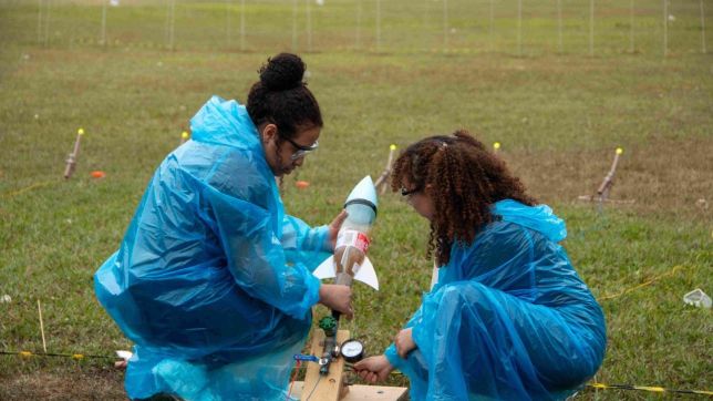 Já o nível 3 é para os matriculados entre o 6º e o 9º, que precisam elaborar e lançar foguetes de garrafa pet movidos com água e ar comprimido. No nível 4, alunos do ensino médio lançam foguetes movidos com vinagre e bicarbonato de sódio. Já no nível 5, alunos do ensino médio ou superior lançam foguetes de propulsão sólida.