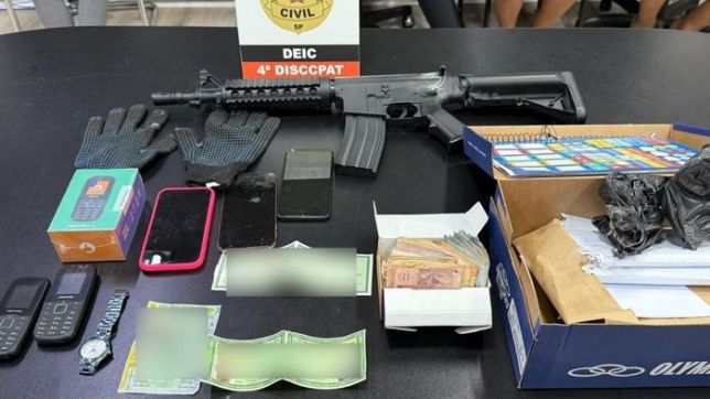 A lista de suspeitos presos inclui um casal, detido em Taboão da Serra, na Grande São Paulo, com R$ 875 em espécie. Com eles, foram encontrados uma réplica de fuzil, celulares, luvas, relógio e anotações de contabilidade de comércio de drogas.