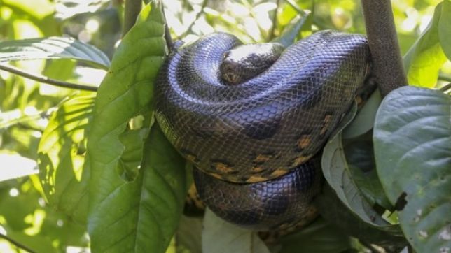 Como uma anaconda brasileira de 80 kg faz para subir em árvores?