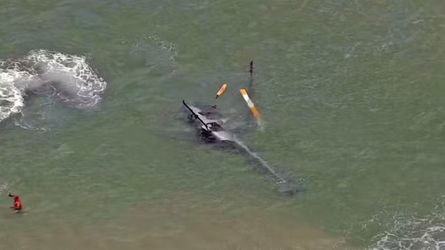 Helicóptero cai no mar da Barra da Tijuca e passageiros são resgatados com vida