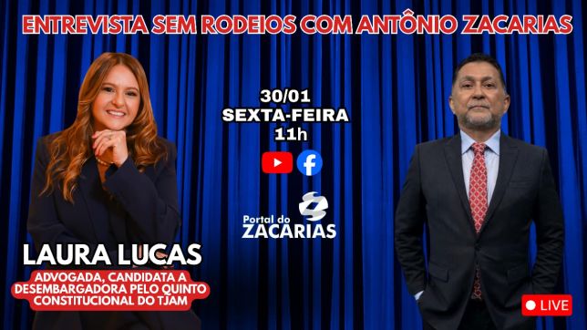 O empresário e jornalista Antônio Zacarias entrevista, na manhã desta sexta-feira (30), a advogada Laura Lucas, candidata à vaga de desembargadora pelo Quinto Constitucional no Tribunal de Justiça do Amazonas (TJ-AM).