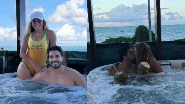 Iran Ângelo, ex de Hulk, celebra romance e posa de maiô do Brasil