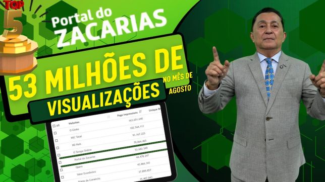 O ‘PORTAL DO ZACARIAS’ registrou no mês de agosto 53.682.549 (cinquenta e três milhões, seiscentos e oitenta e dois mil e quarenta e nove) visualizações. (CLIQUE AQUI PARA ACESSAR O RELATÓRIO DO IVC).