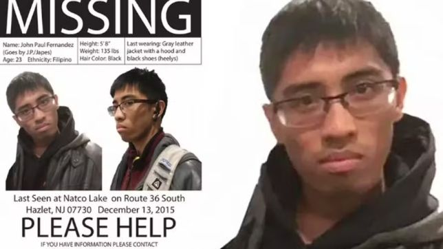 Em uma publicação no Facebook em 1º de novembro, a mãe de John Paul, Ninia Fernandez, compartilhou que testes de DNA confirmaram que os restos mortais encontrados eram de seu filho desaparecido. De acordo com um cartaz divulgado pelo Ministério Público do Condado de Monmouth, ele tinha 23 anos quando foi visto pela última vez no Lago Natco, na Rota 36 Sul, em Hazlet, Nova Jersey.