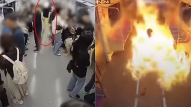 Uma câmera de segurança registrou o momento em que um homem, identificado apenas como Won, derramou um líquido inflamável no chão de um vagão na Linha 5 do metrô de Seul (Coreia do Sul) e ateou fogo, provocando pânico e correria a outros vagões da composição, que estava em movimento.