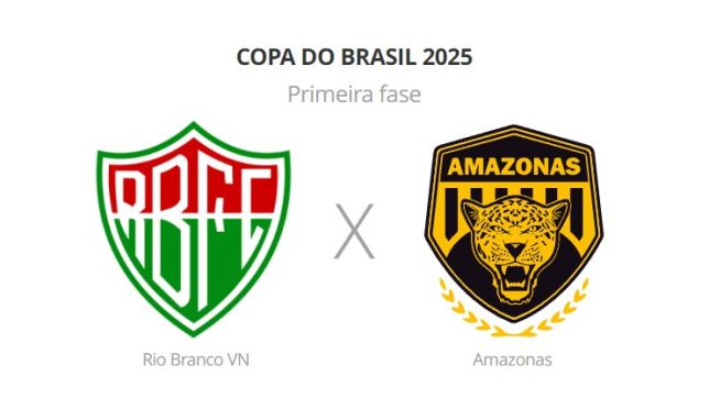 Rio Branco VN e Amazonas se enfrentam, nesta quinta-feira, às 20h (de Brasília), no estádio Kleber Andrade, em Cariacica, no jogo único da primeira fase da Copa do Brasil 2025.
