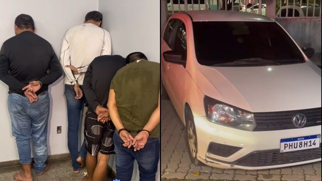 Os quatro criminosos e o carro que era usado nos arrastões realizados no decorrer da noite da última segunda-feira