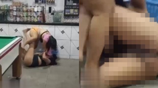 Duas mulheres protagonizaram uma confusão em um bar que terminou em troca de socos, puxões de cabelo, roupas rasgadas e muito constrangimento.
