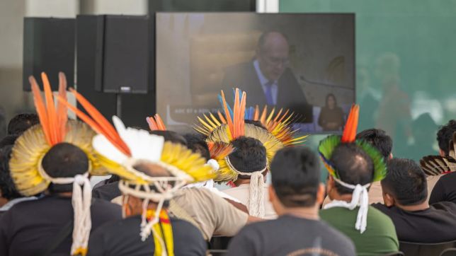 “Cada um desses cocares, excelências, representam uma história de 525 de resistência e de lutas territoriais. Para nós, povos indígenas, território não é mercadoria e propriedade. É a nossa condição de existência, física, cultural e espiritual e identitária”, afirmou.