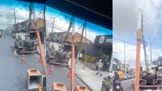 Eletricistas ficam gravemente feridos após plataforma de caminhão-guindaste despencar. VEJA VÍDEO