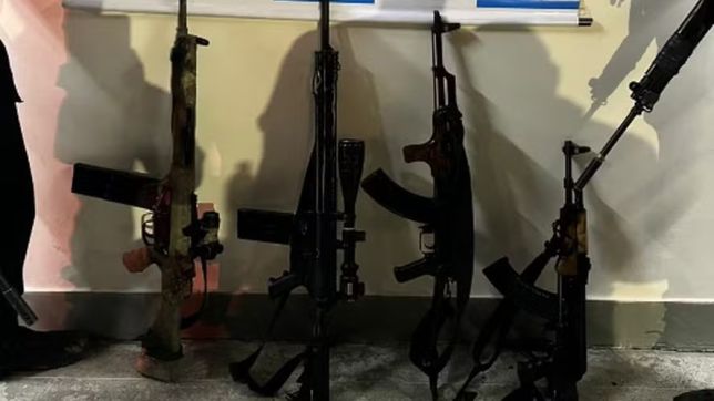 Os quatro fuzis e as três granadas apreendidos pelos policiais militares