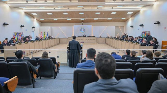#PraTodosVerem – a fotografia que ilustra a matéria mostra o plenário do TJAM durante a sessão de julgamento. Os magistradfos que integram o colegiado aparecem ao fundo, sentados em seus lugares e acompanhando a sustentação oral feita por um advogado que está em pé diante do púlpito (de beca preta), de frente para os magistrados e de costas para a plateia, onde, por sua vez, há várias pessoas sentadas, acompanhando o julgamento.