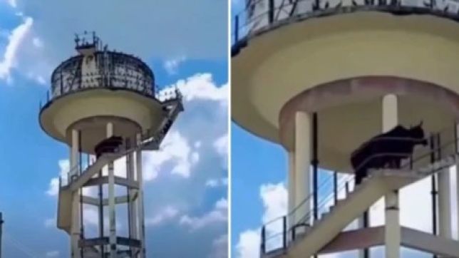 Um episódio inusitado surpreendeu os moradores de Ajmer, no estado de Rajastão, na Índia. Um touro foi flagrado no topo de uma caixa d’água de aproximadamente 18 metros de altura, cena que rapidamente viralizou nas redes sociais.