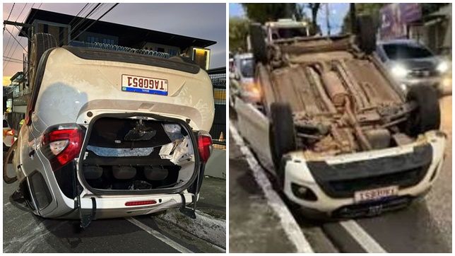 O capotamento aconteceu na Avenida Jacira Reis, bairro Dom Pedro, Zona Centro-Oeste de Manaus, após uma colisão com outro carro, Honda Fit LX Flex, branco, placa NOQ 7048.