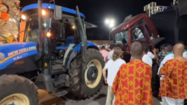 Nesse processo, o trator perdeu o controle e bateu na grua onde estavam os profissionais da imprensa. Ficaram feridos um operador de câmera, que estava em um espaço suspenso e caiu de uma altura de cerca de dois metros, e um outro técnico que trabalhava no local.