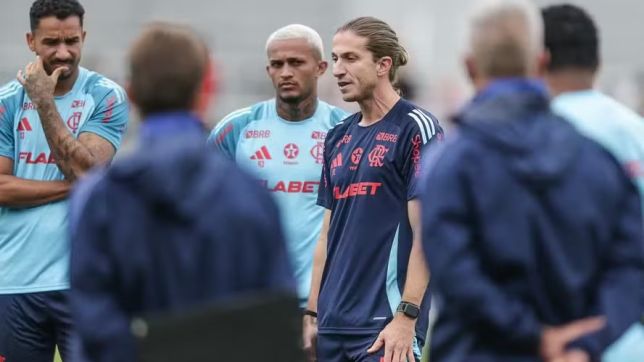 O técnico Filipe Luís precisou interromper o treino do Flamengo desta quarta-feira por conta da ameaça de chuva e de raios na região. O campo de treinamento da equipe fica na Universidade de Stockton, em Atlantic City.