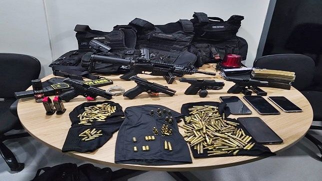 Armamento e diversas munições foram apreendidos durante a ação em que três PMs foram presos
