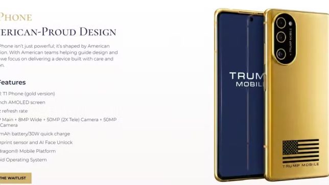 A nova atualização reforça o design com acabamento dourado e elementos da bandeira norte-americana na parte traseira, mantendo a proposta de um aparelho com identidade visual forte ligada à marca Trump.