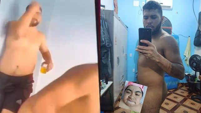 Nas imagens Diego Damasceno aparece nu, fazendo selfie e olhando suas nádegas em um espelho, dentro de um quarto.