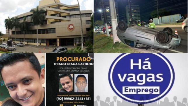 VEJA RESUMO DE NOTÍCIAS NA MANHÃ DESTA QUARTA-FEIRA: PC-AM divulga imagem de homem procurado por lesão corporal contra o enteado de cinco anos; motorista fica ferido após carro capotar na Av. Coronel Teixeira; Sine oferta 412 vagas de emprego
