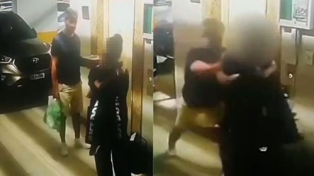 No vídeo, a mulher aparece com o filho de quatro anos no colo quando o agressor avança de forma repentina, desferindo tapas e socos contra a criança.
