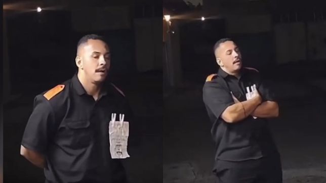 Nas imagens, o profissional aparece visivelmente exausto, tentando se manter de pé, mas sendo vencido pelo sono em pleno serviço. A situação rapidamente viralizou, principalmente pela forma incomum em que o descanso acontece.