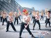 Ativistas protestam com máscaras de porco diante do Louvre contra impunidade no caso Epstein
