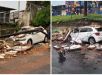Muro da Ambev desaba e poste da rede de energia elétrica desabam sobre carro durante a chuva no bairro de...