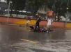 Colisão entre motos acontece na Avenida Brasil sob forte chuva em Manaus. VEJA VÍDEO