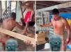 Homem completamente nu é castigado a pauladas dentro de embarcação após ser pego roubando no Porto de...