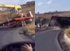 Vídeo mostra momento em que caminhão tomba em rodovia após trator se desprender. VEJA